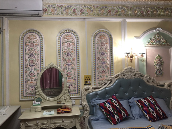 民宿苦疫多日,旷久生尘。皖籍主人给我们升级房间,且置于两房。老板有询必答,殷勤友好。退房时我们也投桃报李,莫使心冷。房室维族风格布局,装饰异域,迎合游心。