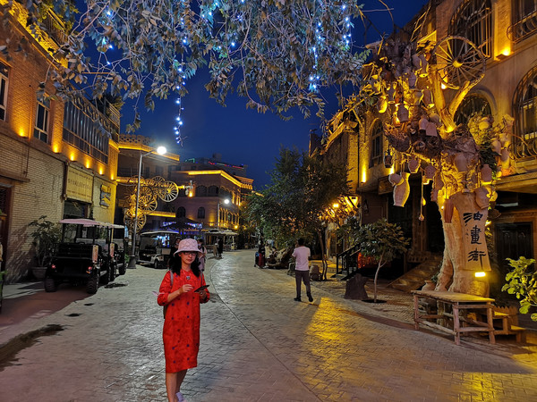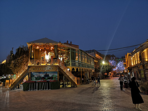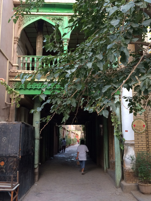 当地时间入夜后抵古城中心民宿。民宿主人从展览中心接回。民宿在古城中心位置,在菜巴扎与油画街附近的盖孜尼其巷,是一条民宿街,