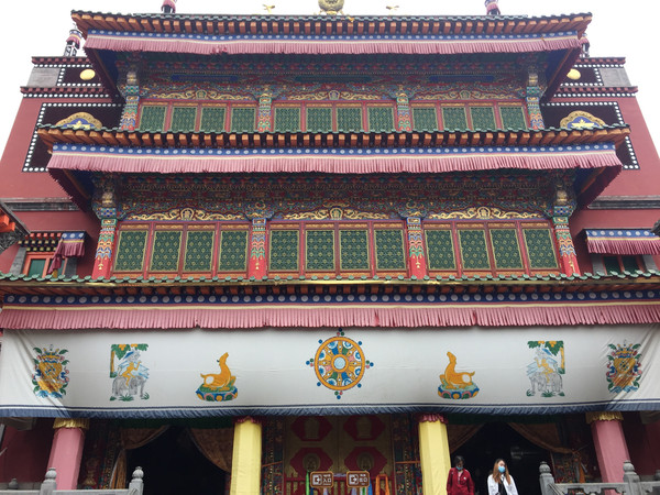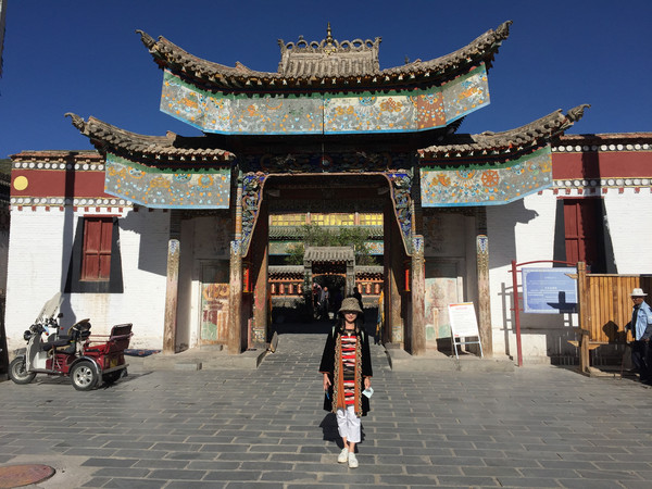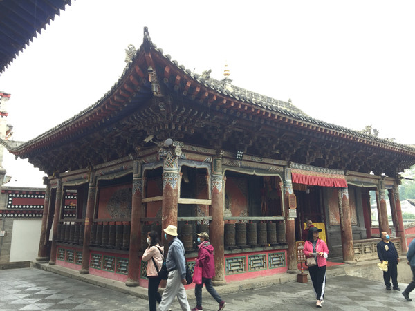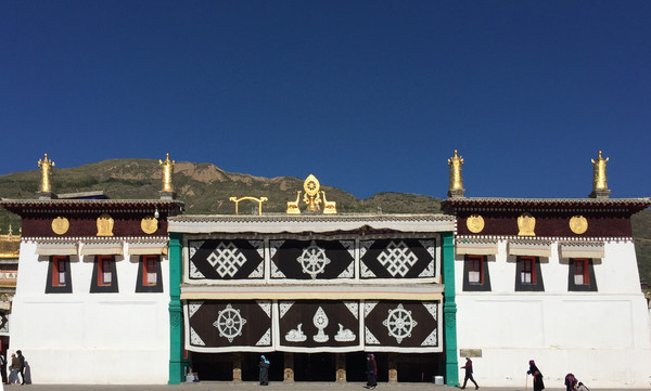 后转格鲁派,传承久远,地位颇高。寺内禁拍照。门岗见生人拦下,60 元/人,可以接受,为助香火。当地人免费。进大门时,见另有几人进寺,中有一瘦小女人,隐身胖大喇嘛飞舞的大袍身后,仰面悄声问道:要买票吗?喇嘛目不邪视、口型不动地嘟囔:不用,跟我走。