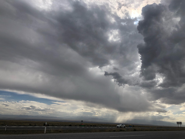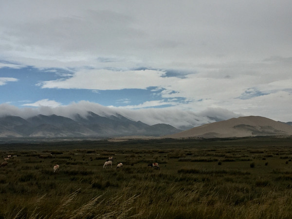 时而黄茅绿草,一望无际;时而乱峰插天,风雨往住生其上;时而黄沙盈目,一派萧索。时而远眺风雨暴至,云雾晦冥,天地不辨,山川湖泽,皆随失之。一路从盆地的低湖、沙漠,迅速向高原、谷地过渡,几十公里,穿越盆地内外不同地貌。