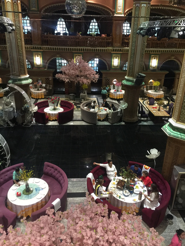 可以边看歌舞边进餐,但为时尚早,十九点开始歌舞。不愿立迨。