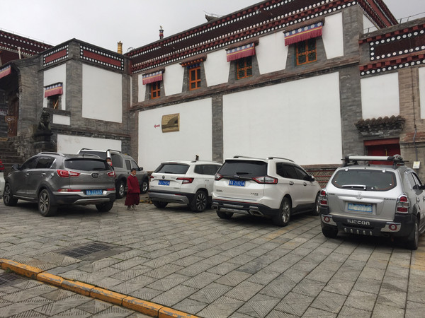 寺外可以拍摄,寺内严禁。寺内众僧安祥专注,低声诵颂贝叶,状若蚊雷。持手机入寺,甫一抬手,忽闻雷霆凭空炸响,吓人心惊,保安厉声喝止禁拍,视若盗寇。寺内外人头攒动,但不禁车辆,许史之属的小车,在人群中蠕动,停靠寺墙。