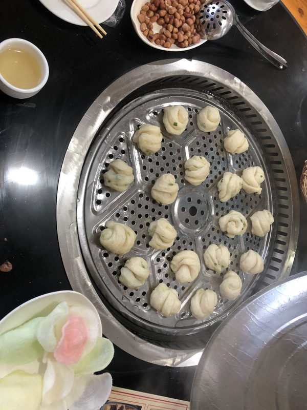 六个人的量(堂哥不吃,我老婆只算半个人的食量,司机称不饿,后与其堂哥另聚喝酒,故菜余一多半,打包当第二天早餐后又扔一些,),比北京的价位仍低许多,坐尔哂纳了当地人的伎俩。