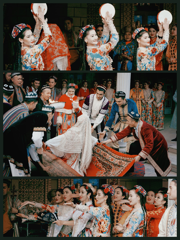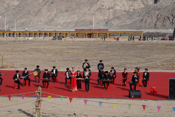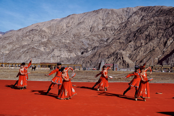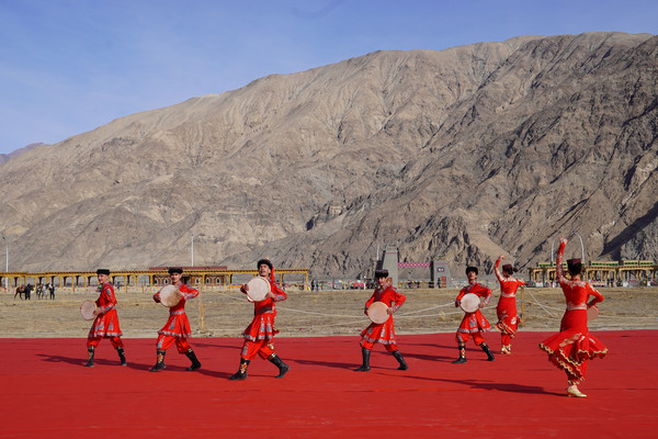 以山为幕、地为席,一块红毯就是大自然中最耀眼的舞台。悠扬的塔吉克族民歌、代表塔吉克族精神的鹰舞接连上演。
