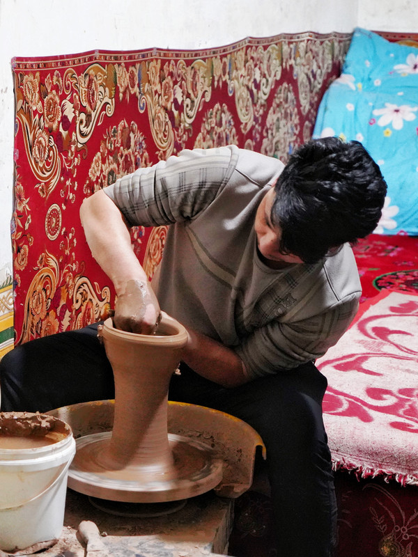 英吉沙县的土陶烧制历史已达千年,要经过10多道工序纯手工制作,具有极高的观赏和艺术收藏价值。