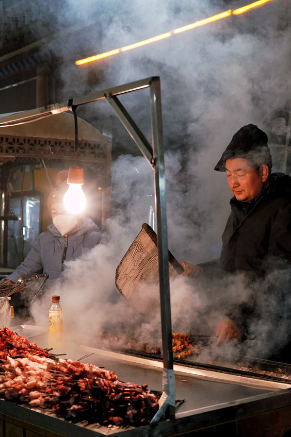 寒冷的冬天丝毫没有减退人们对美食的欲望,从街头吃到街尾,一路都是人声鼎沸。