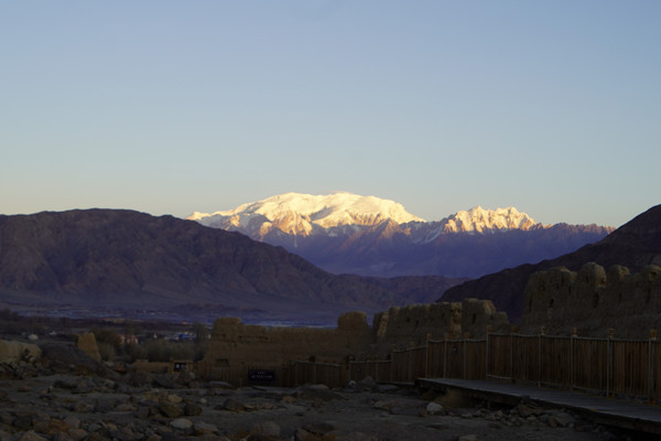 登上曾经的王宫,正好迎来慕士塔格峰的第一缕阳光。晨曦抚过旁边的金草滩,蒸腾出金色氤氲。此时,十点二十分,塔什库尔干的一天,才刚刚开始~~