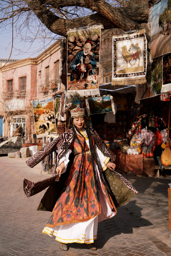 接着,去阿热亚路上的“入迷文创”租上一套维族服饰;