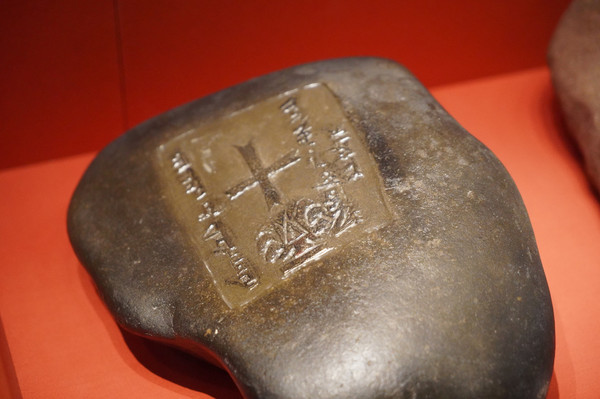 第二个展厅陈列着古代新疆佛教文化盛行的区域出土的佛教残片、法卢文残片、婆罗谜文残片、各种陶器、纺织品等古代生活用品。