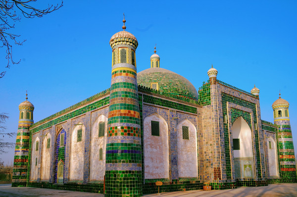 香妃园位于喀什市东郊5公里处的浩罕村,香妃园是一座大院,院内修建了门楼、小礼拜寺、大礼拜寺和主墓室等建筑,恢宏漂亮。