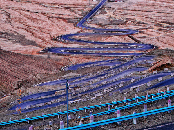 新疆的地形,山脉与盆地相间,盆地与高山环抱、俗称“三山夹二盆”。你看像不像“疆”字的右半边?高山为横、盆地为田。