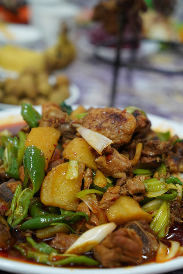 从沙漠出来,再去旁边的美食区饱餐一顿。烤肉、烤架子鱼、大盘鸡、烤包子……没想到景区里也有这么地道的新疆美食,一点也不糊弄人。