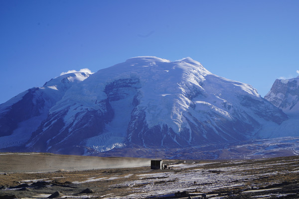 汽车在沟壑纵横的峻岭中穿梭,抬头却总是能看到远处的慕士塔格峰在指引方向,雪白的山峰壮美又温柔。