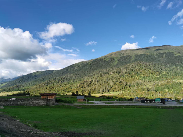 超哥告诉我们哪些景区不需要买票进入,途中会找合适的位置停车让我们观景、拍照。快到鲁朗小镇的时候找了个小超市停车采买,超哥说他下厨做晚饭,耶!那我还不赶紧抢着付帐。自从同行的河北俩小哥突然离队,车上只剩超哥、妹妹、我和儿子,所以原本说好的分摊超哥吃住费用的事也就不放心上了,我买他做挺好的。