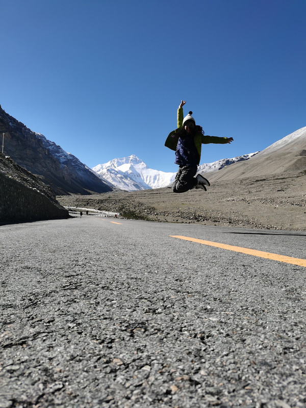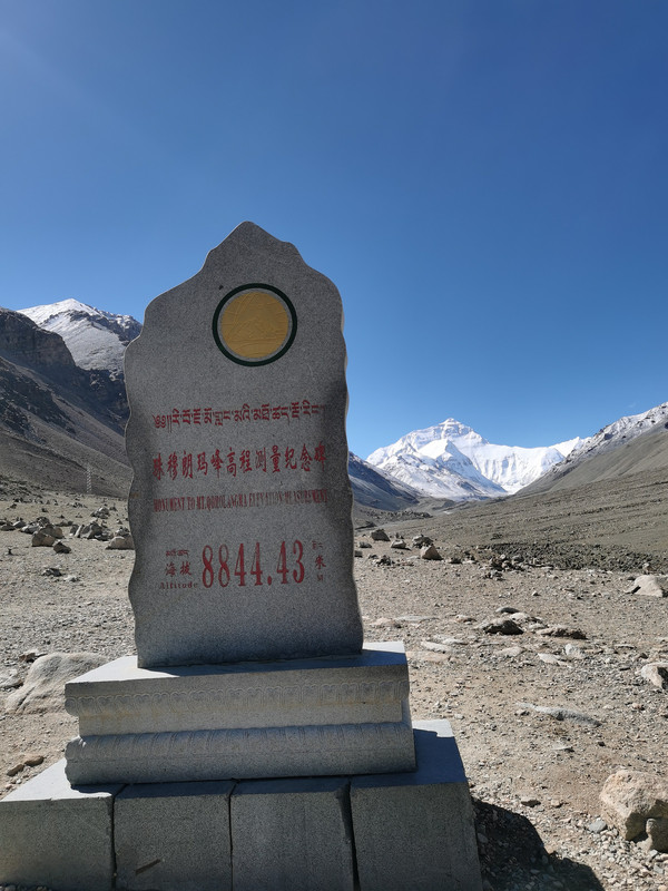 开上去不远就到了环保车站,车票120元往返。环保车司机说我们很幸运,之前的几天天气都不好,看不到珠峰,今天第一天放晴,同车一起上来的一拨人昨天到的,没看到珠峰多留了一天。珠峰在蓝天的映衬下尽显它的圣洁与巍峨。