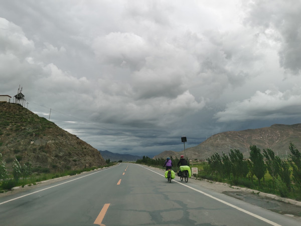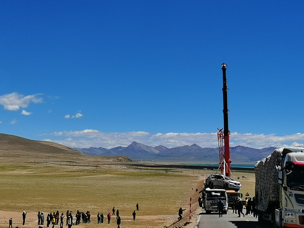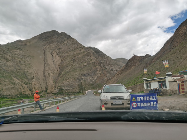 再接下去路况就不行了,大货车多的很,还有修路的路段尘土飞扬,难以相信这里是空气污染指数接近0的西藏。双向两车道,小车超车很不容易,返程的时候就碰见有小车打着滚翻在道路远远的地方等待救援,