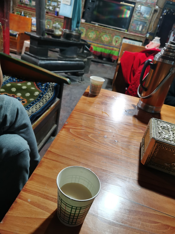 早上(8月10号)睡到自然醒,去一家比较正宗的藏餐馆,点了一壶甜茶和据说汤是纯牛骨汤 面却不咋地的藏面,吃完结论:面还好,汤不错。