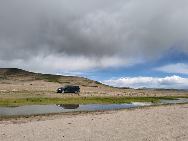 终于看到纳木错了,大家都在惊呼,要求开慢点拍照,超哥淡定地说找个地方下去。于是我们的“商务越野”就帅帅地停在了湖边,我们也得以第一次与湖水亲密接触。