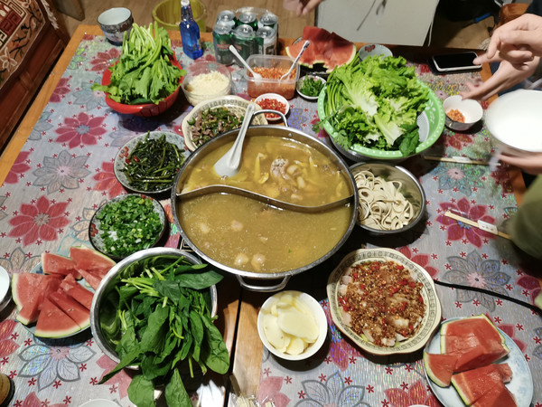 赶着时间回来一起分工合作造晚饭。来自四川的老板超哥手艺?,晚餐头牌自然是白水肉片,