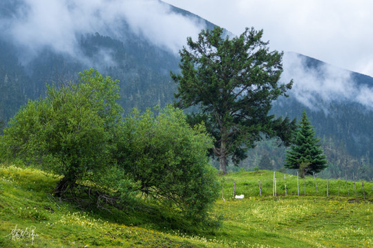 草甸上、森林里,都是雨水洗过的痕迹,整个感觉格外地碧绿苍翠,深呼吸时的氧气充足,空气里闻着清新的草木香,与 西藏 其他地方真的不一样。