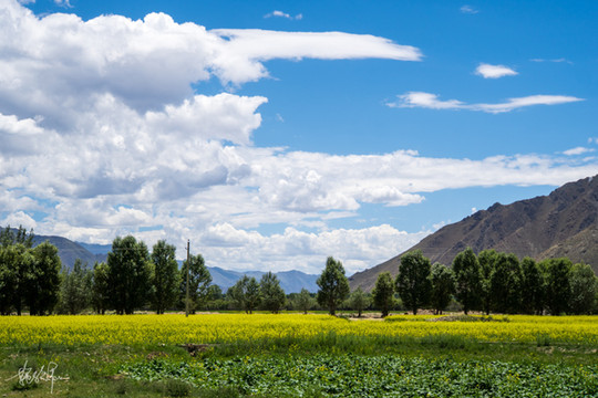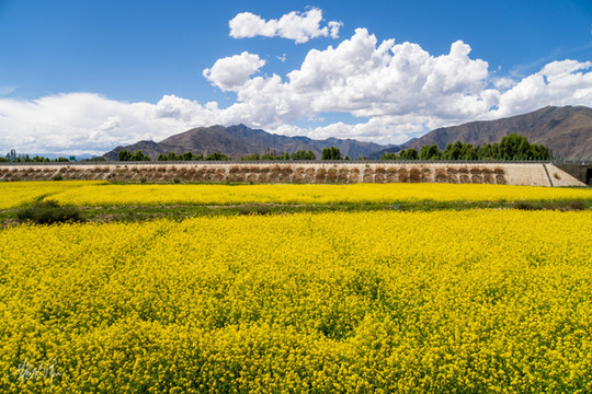 我还在问国文,不知道 达孜 的薰衣草开了吗?几分钟后,老C便骑上前来问要不要顺便拐过去看一眼薰衣草啊。正有此意,于是大部队往薰衣草的方向走去,不仅浪漫的薰衣草开了,黄灿灿的油菜花也开得正旺。
