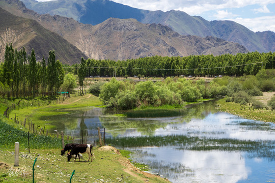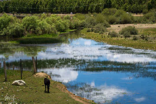 回到酒店想着继续往前骑车看看,才发现隔壁就是一个湿地,美得不可思议。我问坐在里面过林卡的朋友,怎么进去?他们让我翻墙,这虽然写出来不好,我还真的就翻了墙进去感受一下大自然,顺便跟他们踢了一会儿足球,差点把高反踢出来。