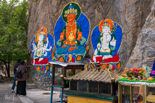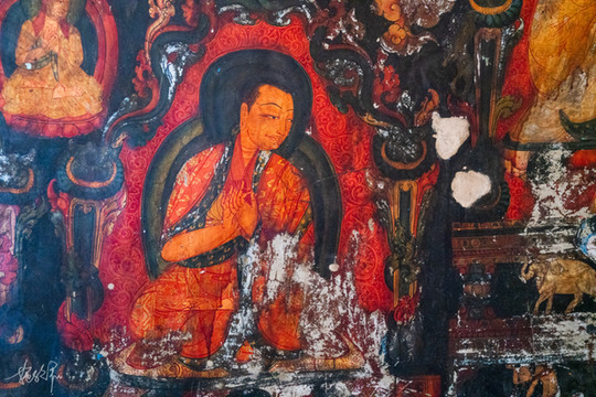 他说他跟看着东嘎皮央几十年的那位老伯说了,让他来帮忙开门让我们参观两三个洞。八十来岁的波拉带着钥匙缓缓而来,我觉得他可能是跟我有缘,一看到我就牵着我的手爬上山,并且直接给我钥匙让我打开洞门。进入里面壁画那叫一个美轮美奂,古格王朝的壁画像是精修过的,东嘎皮央的壁画就透露着一丝原始的味道。