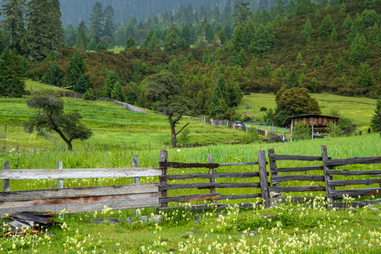 海拔3700米的鲁朗小镇,周围雪山林立,峰峦叠嶂的原始森林,纳麦村、鲁朗国际旅游小镇、扎西岗村、高山牧场,这一个个点合起来才算得上是鲁朗。鲁朗在色季拉山脚下, 林芝 特殊的高原温暖半湿润气候使得鲁朗在夏天时,常常烟雨绵绵、云雾弥漫,草原上的花儿竞相开放,到处都是木篱笆与漫山牛羊,鲁朗的田园风光实在美不胜收。