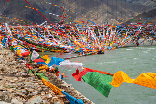 它们就像彩虹般装点在巍巍雪域净土之上,摇曳在大地与苍穹之间。蓝、白、红、绿、黄,它们分别象征天空、祥云、火焰、江河和大地。