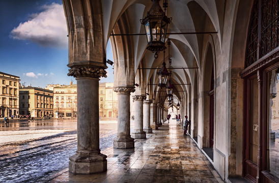 在圣玛利亚教堂前的另一座宏伟建筑是纺织会馆(Sukiennice),这里以前是国际交易场所,现在是国家博物馆所在地,内藏无数波兰艺术作品。