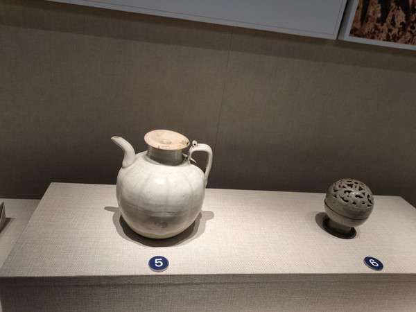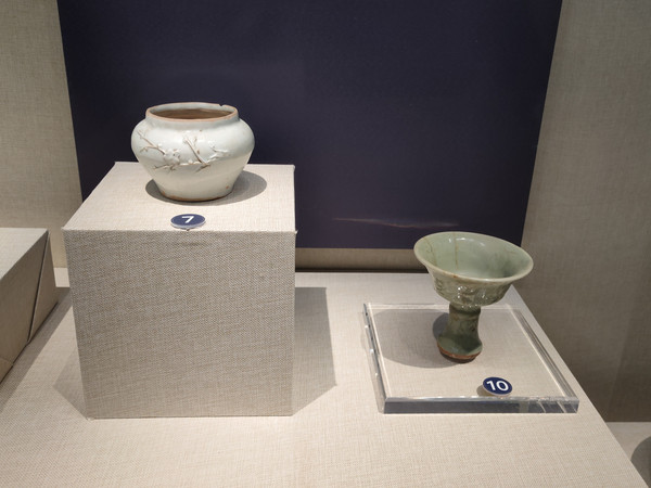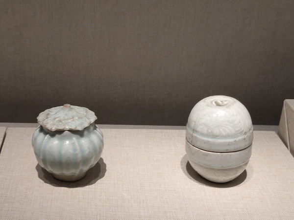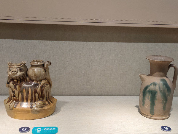 馆内的两件瓷枕就很有特色,饰纹精神,釉色也比较多样。青白釉则比较素淡,以青瓷、白瓷为主,青瓷的釉色也偏淡。