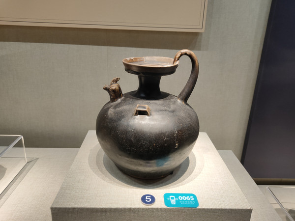 瓯窑位于浙江南部温州一带,创烧于汉代,六朝时期得到迅速发展,镇江出土的瓯窑瓷器在三国吴、西晋时期很少,南朝的较多。东晋的瓯窑褐釉鸡首瓷壶壶口敞大,但壶颈较细,壶身又圆滚滚的,鸡首显得很小,尾巴延伸到营业口,釉色黑褐。