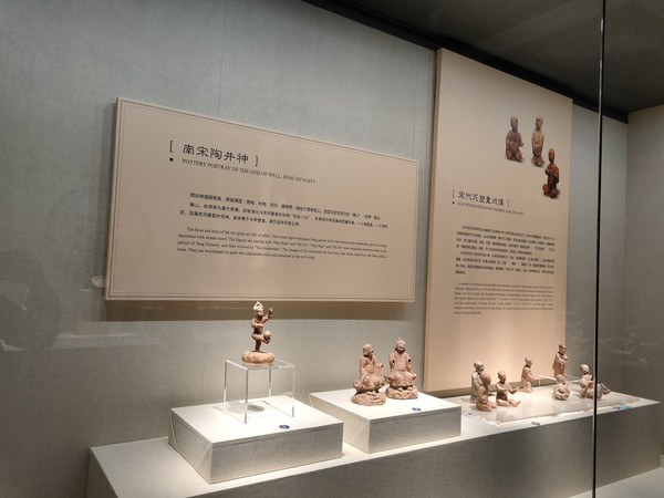 南宋陶井神是一对,眉眼弯弯,笑容满面,宽袖广袍,腰间束带,端坐在涌泉座上,这造型跟寒山、拾得“和合二仙”很相似。他们被供奉于水井壁龛,肩负监井司泉之责。