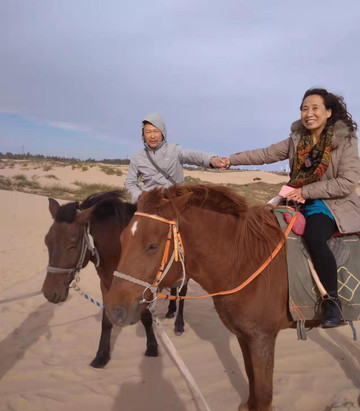 骑上马徜徉在沙海中,那种惬意无法形容,拉着老B的手,人生仿佛又回到了30多年前,你突然感觉,那双手还真的不是左手摸右手的感觉!(哈哈)