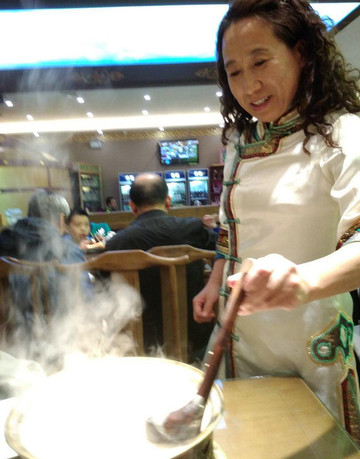 还第一次喝了酥油茶,老B穿上了蒙古族服装在为我服务呢(哈哈)!