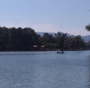 (湖区占园区面积十分之一,湖面被长堤和洲岛分割成5个湖)