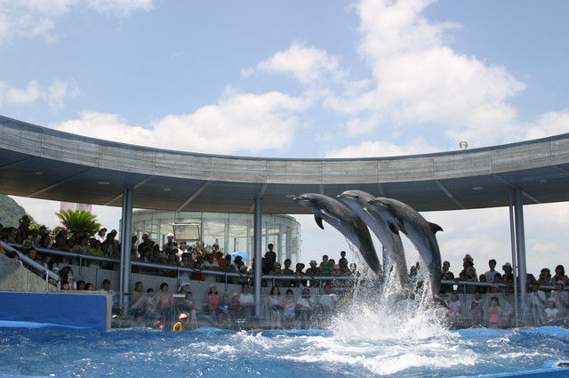 在室内海洋区域的大型洄游水槽里,有着一处仿造大分县谷湾海岸制成的人工岩,在那附近游动着来自丰后水道的大约90种鱼类,数量多达1500尾,游客们可以近距离观看鱼类欢快游动的场景。此外,在奇幻区域,还可以观赏各类生物之美,例如在黑暗中被照亮的白带鱼,以及随着特殊照明效果而改变颜色的水母。