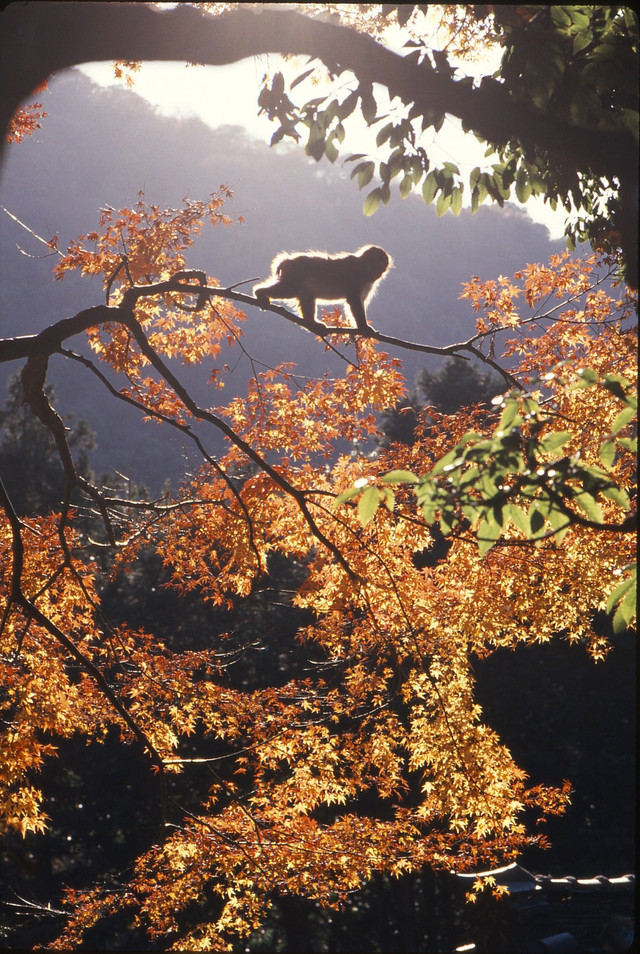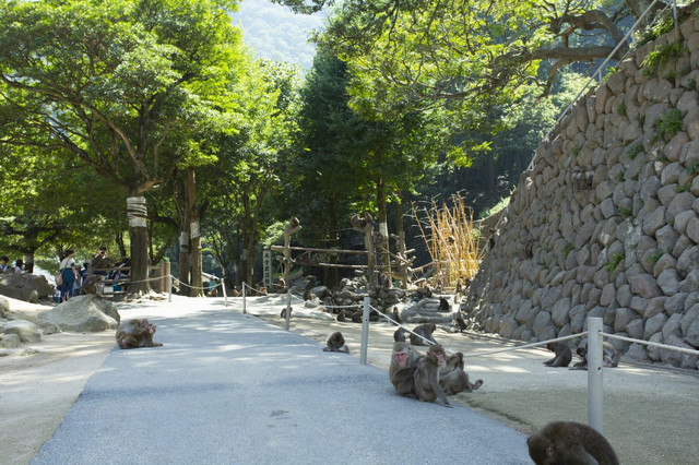在大分市西端有一座海拔628m的高崎山,这里生活着众多野生的日本猕猴。