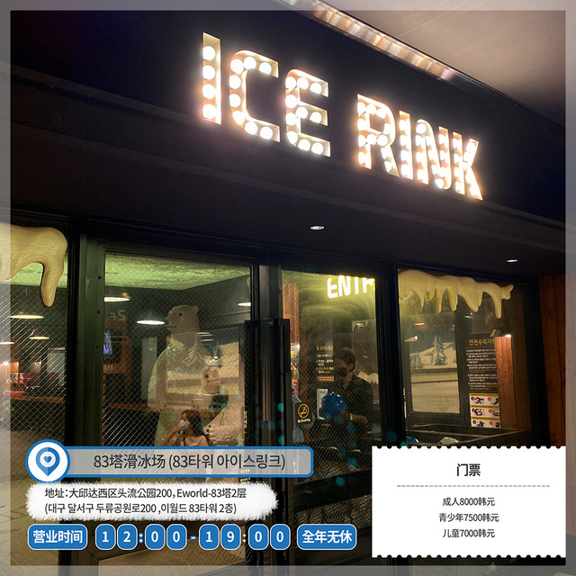 83塔滑冰场的门票是成人8000韩元,青少年7500韩元,儿童7000韩元。