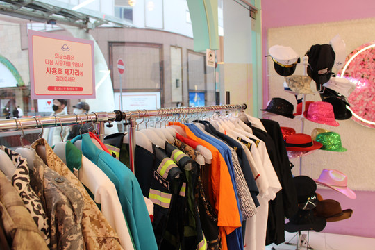 一人一套服饰, 加鞋帽和小手提包. 服饰租借费用是一套一小时2万韩币,三个小时2万5千韩币~ 选好服饰告诉老板之后,老板就会协助穿搭~