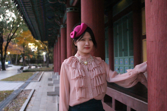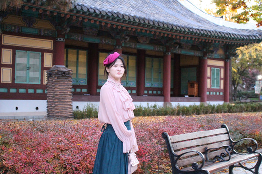 在咖啡店里拍完后,再去周围的公园里拍,时间充足的话穿着洋装在香村洞边逛边拍照非常不错哦!