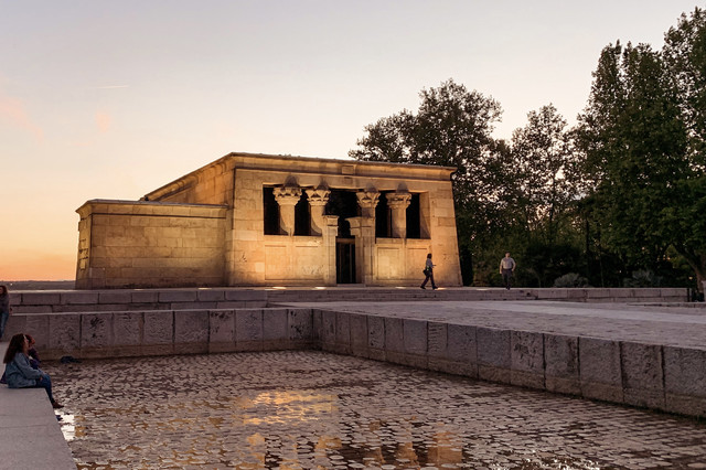 日落时分来德波神庙看一场马德里最美的日落。德波神庙建于公元前2世纪,是一所在马德里异地重建的古埃及庙宇。由于西班牙在埃及修建阿斯旺大坝时协助保护阿布辛拜勒神庙,埃及将这个庙宇赠送给西班牙以表感谢。