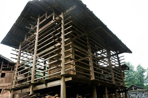 木结构吊脚楼,一楼一底,屋顶盖青石或土瓦。因科学家在这里发现保存完好的古生物化石群,被誉为“震惊全球的发现”