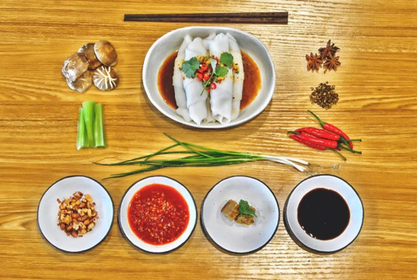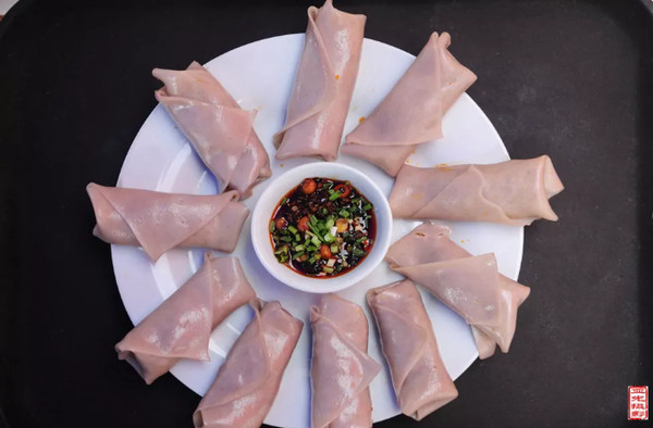 卷粉制作不复杂,但却很讲究。将瘦肉、窝笋、干豆腐等分别切为小四方块,炒熟备用,然后将柔软的米皮平铺在桌子上,根据需要,切成小三角块状,然后用汤勺把配料舀放到粉片内,包裹起来,成一小长形圆筒状,就是卷粉。卷粉可热吃可冷吃,根据个人喜好,一般冷天会热着吃,口感更好,更暖和。炎炎的夏日来一碗凉卷粉,心里凉悠悠的感觉,去热消暑,卷粉吃的时候一定要拌上酱油、豆腐卤水、酸醋、撒上葱花、姜米、辣椒面,更有滋味。