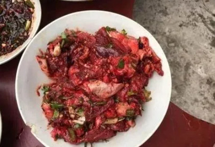 煮熟的肉拌上生血,并加入姜、蒜、辣椒和一些野生香料,就成为了侗家特色美食——生血拌肉,听起来虽然让人有点打退堂鼓,但是实际上生血拌肉的味道是很好的,血拌肉的血必须是检疫过没疾病的猪血,另外,辣椒等作料也起杀菌作用,所以还是可以放心食用,千万不要被制作过程吓到而错过了美味哦。