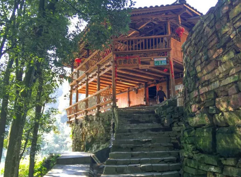 古井农家乐位于八郎古生物化石群景区核心区内,因其家就在古井左上方,空气清新、环境优美。房屋以石板为基,木房为主的苗家吊脚楼。其特色有苗家土鸭炖稀饭、火碳灰烤洋芋、鼎罐饭、荷叶蒸鸡等。在这里了不仅可以可以享受古井的幽凉,更拾起童年记忆的美味。