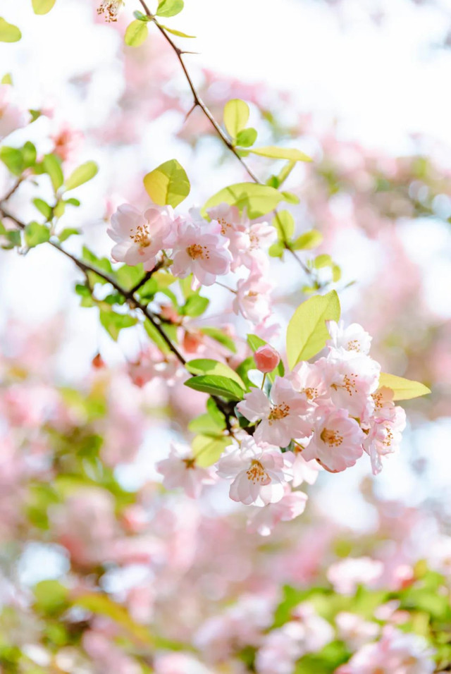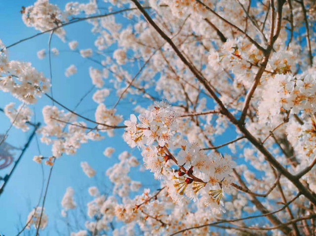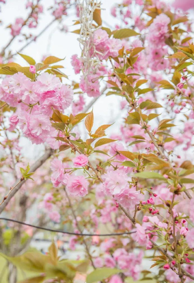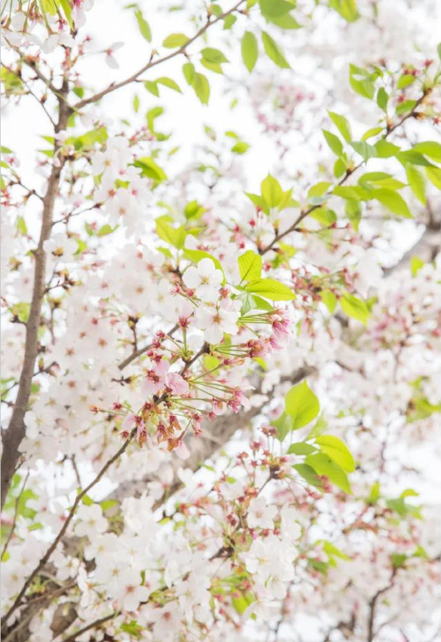 抬眸张望,粉嫩樱花朵朵含苞吐蕊,满满的小清新。