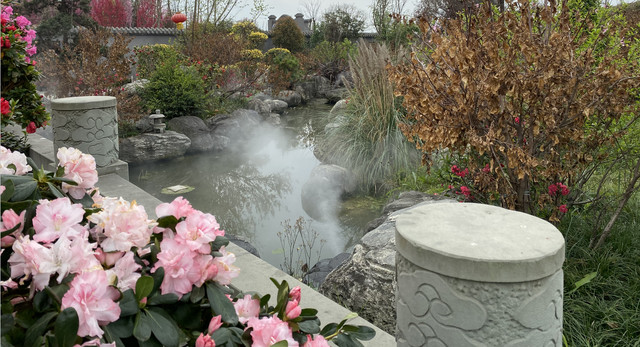 水渠清冽,假山为屏,阳光留在水面上只剩下剪影,不知道夏天水池里是否会有荷花和红色的游鱼。