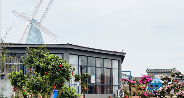覆盖园区大部分区域的五颜六色的花朵,将这里点缀成了一个琳琅满目的花园。绿色枝条低垂,藤蔓倚着篱笆生长,遍地青草随风摇摆。
