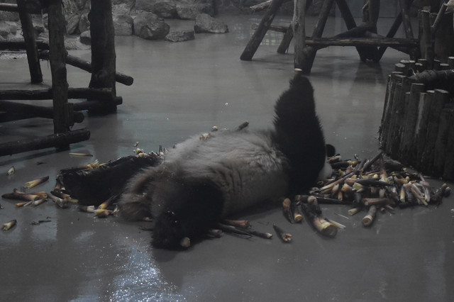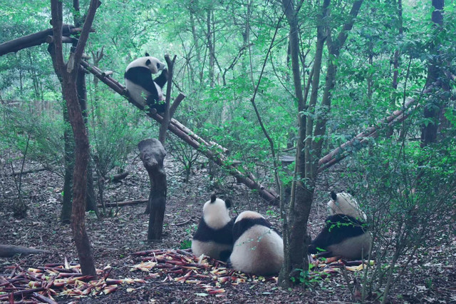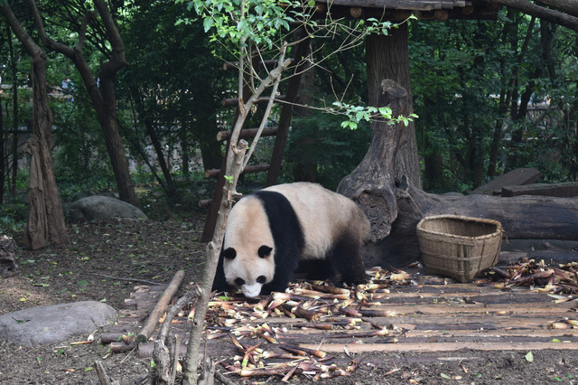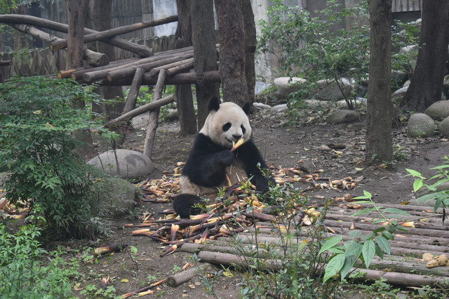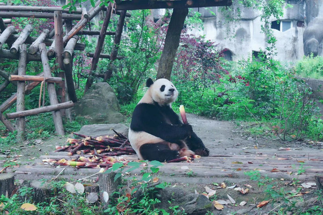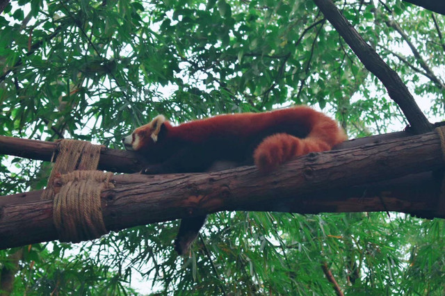 很久之前就开始关注微博iPanda熊猫频道,所以对熊猫基地有一定了解。毕竟团子人人爱,所以景点的人也比较多,7点半开门,建议尽早过去。游览路线在官网园区地图模块有推荐,分1.5小时和3小时两种,我们是跟着导游走的,大概逛了2小时。现在这个时段据说团子们都忙着谈恋爱去了,还没有小宝宝可以围观,要想看熊猫小宝宝要等7月之后。基地有200多只熊猫,当然不能全部都看完,而且国宝是否营业也要看它们心情,有时候天气热了它们就不怎么在户外活动了,我们去的那天看到了大概30多只吧,基本都处于坐着躺着吃吃吃的状态,这个季节有新鲜的竹笋,它们吃得可香了,就是比较浪费,只吃尖尖最嫩的部分,还真是伺候得很好吖,看熊猫吃播感觉是一件不会厌烦的事。熊猫基地还有小熊猫馆,就是类似干脆面的小家伙们,有个散放的场地可以近距离观赏这些小可爱,不过我们去的那天在活动区只看到2只小熊猫,接客热情不高囧,其中1只趴在门口的树干上,懒洋洋的样子也是很萌了。